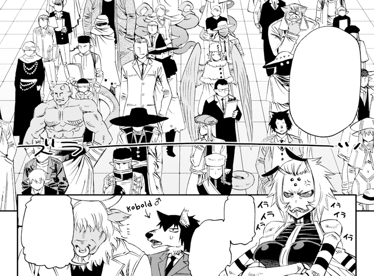 At a certain point, probably shortly before the events of Volume 1, Killa was waiting in a long queue with many other liminals (including many males) for a one-on-one interview for eligibility to study abroad as part of the interspecies cultural exchange. The queue was very long and moved only slowly, which pushed the generally very temperamental Killa to the (short) limits of her patience. A male Kobold in the near of Killa also began to impatiently complain about why the wait for the interview was taking so long.